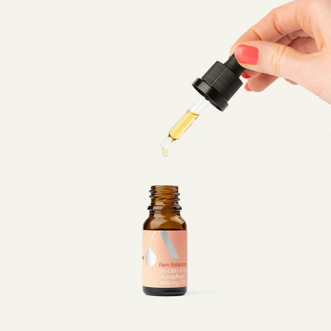 Das CBD-Öl «Fem Balance» kann bereits einige Tage vor der erwarteten Periode eingenommen und währenddessen fortgesetzt werden. Es lässt sich selbstverständlich auch den ganzen Monat über verwenden, um von den wertvollen Eigenschaften von CBD und Ingwer zu profitieren.